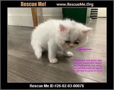 26-02-03-00076C34Persian had ringworm (f)(female)PersianKings County, Brooklyn, NYID: 26-02-03-00076